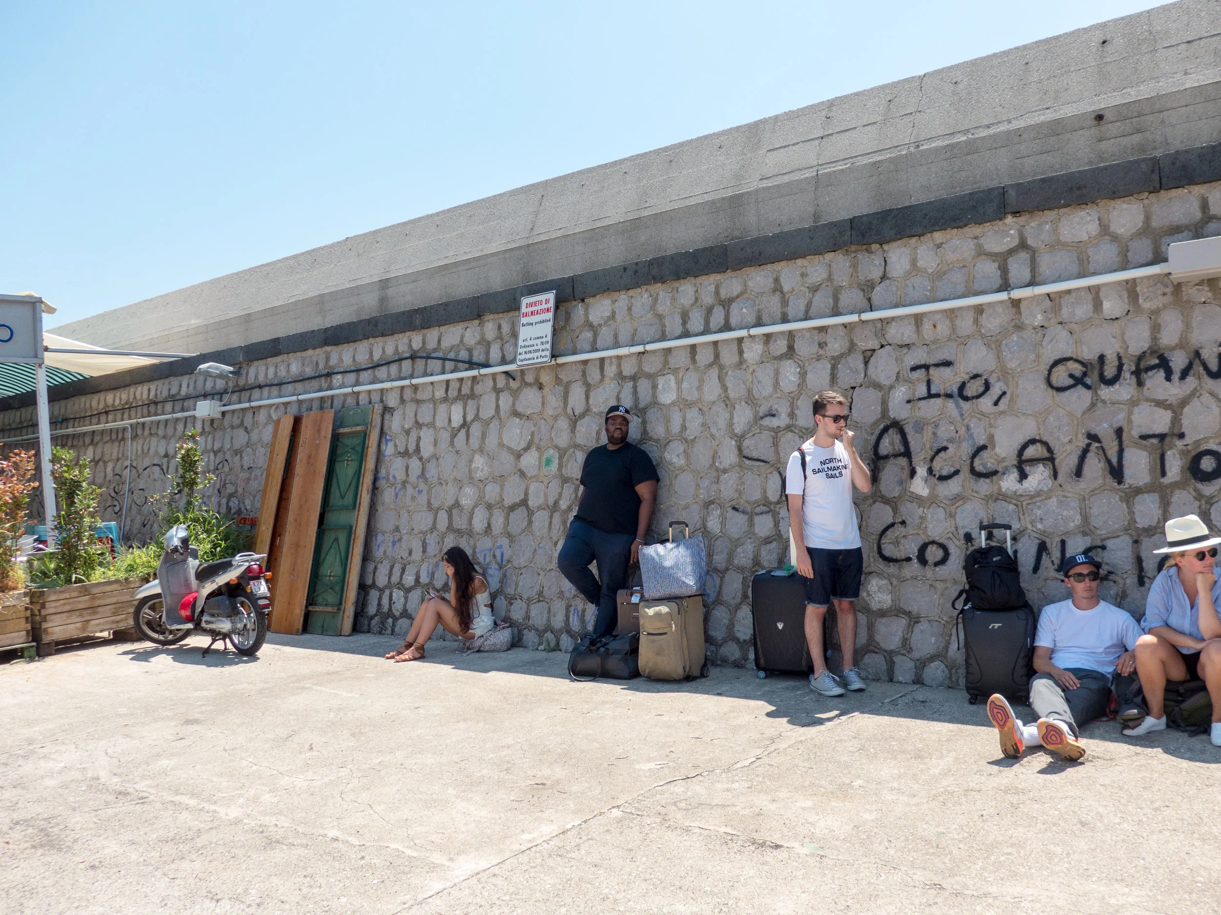 You can anxiously wait in the sliver of shade along the wall for the ferry, or...