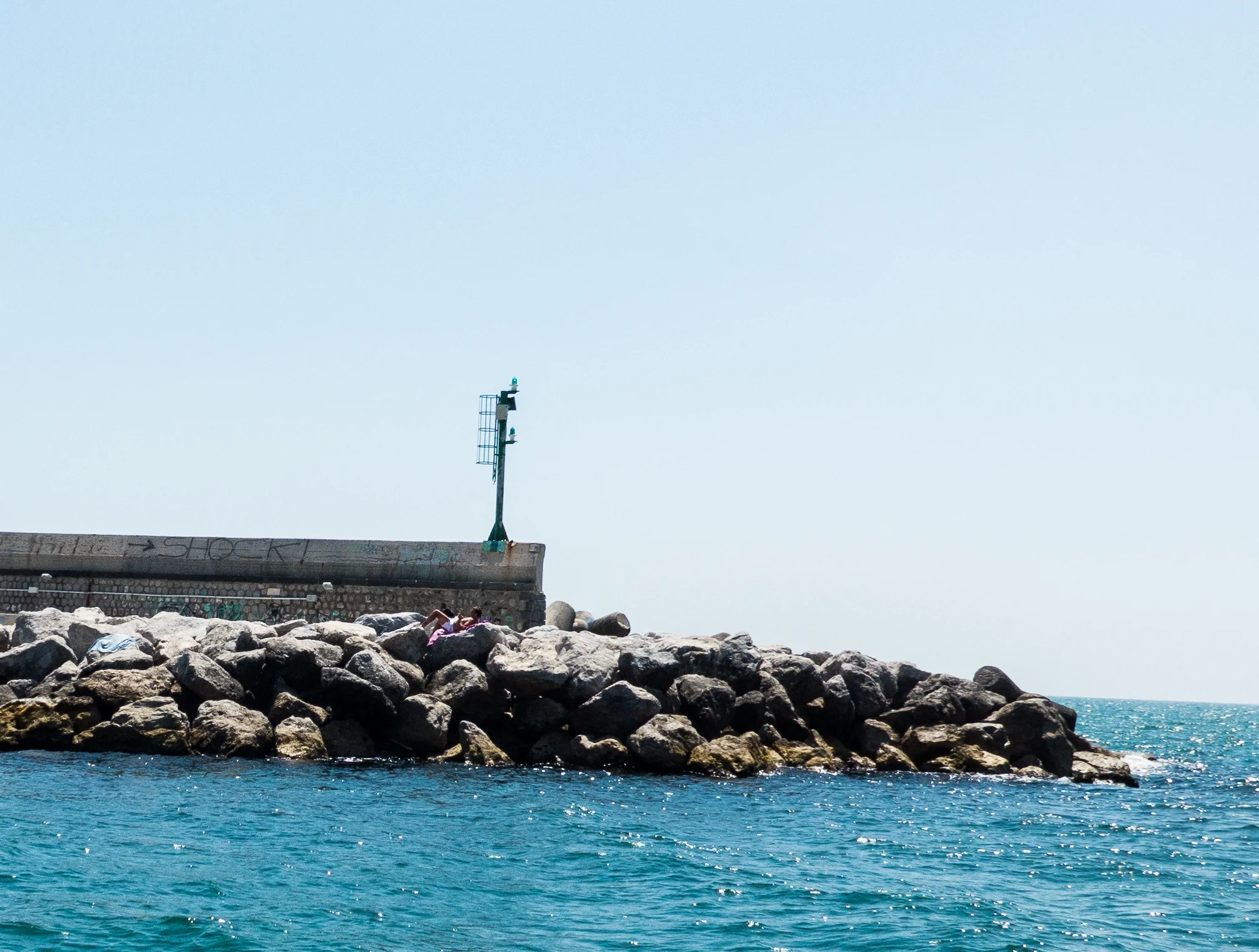 you can use this break in travel to soak in some rays on the boulders at the end of the wall like the locals do!