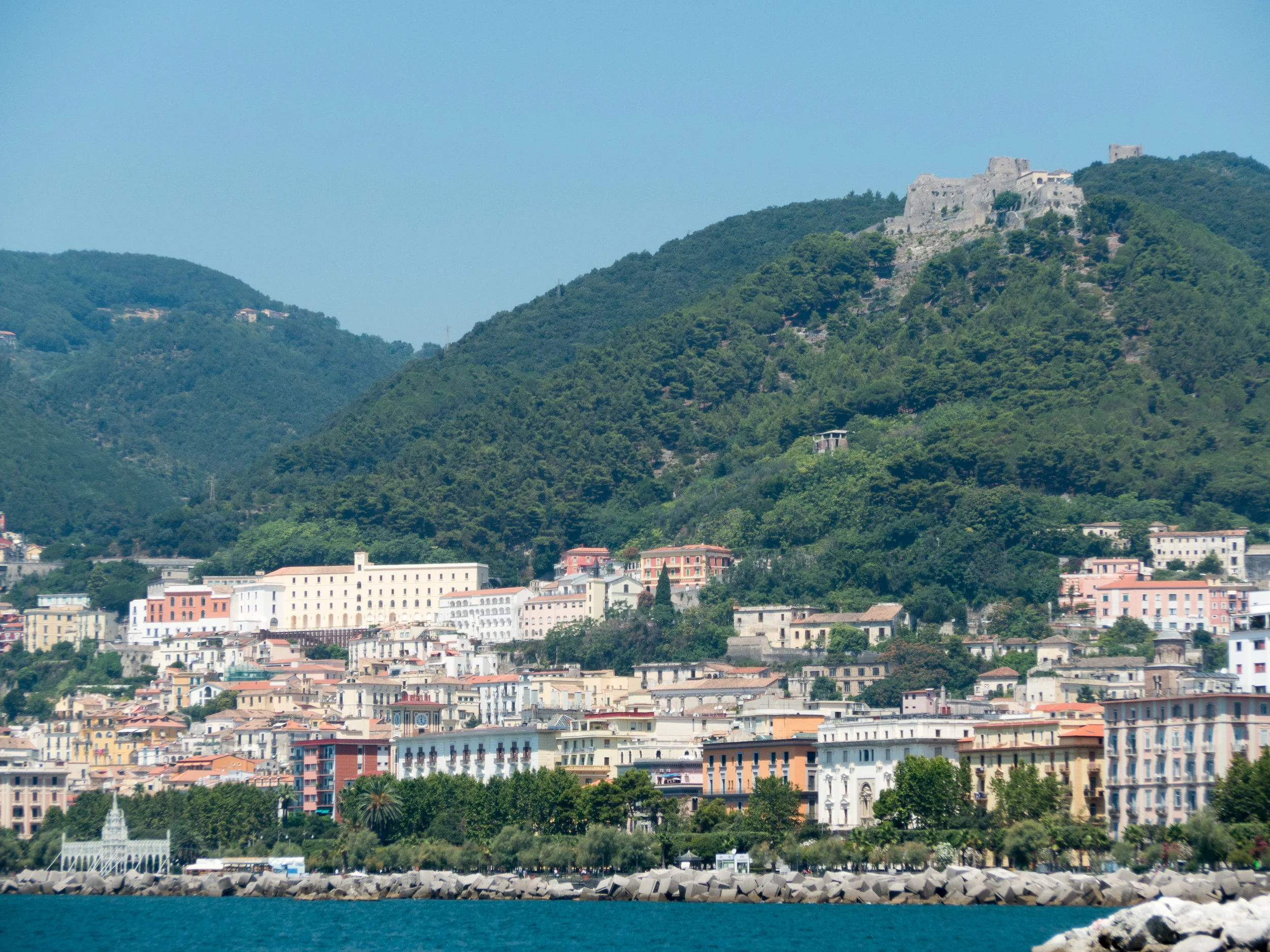My husband and I traveled down from Rome on a reasonably scenic 3 hour train ride during which we passed beautiful Italian countryside. Once we arrived at Salerno, there was no information visible in the train station regarding how to travel to the port to catch the ferry to the coast. We relied on the kindness of a stranger who guided us and, with our backs to the train station, we walked pretty much straight ahead to the waterfront then made a left onto the waterfront and then a right onto the port where we paid for tickets to Amalfi.
